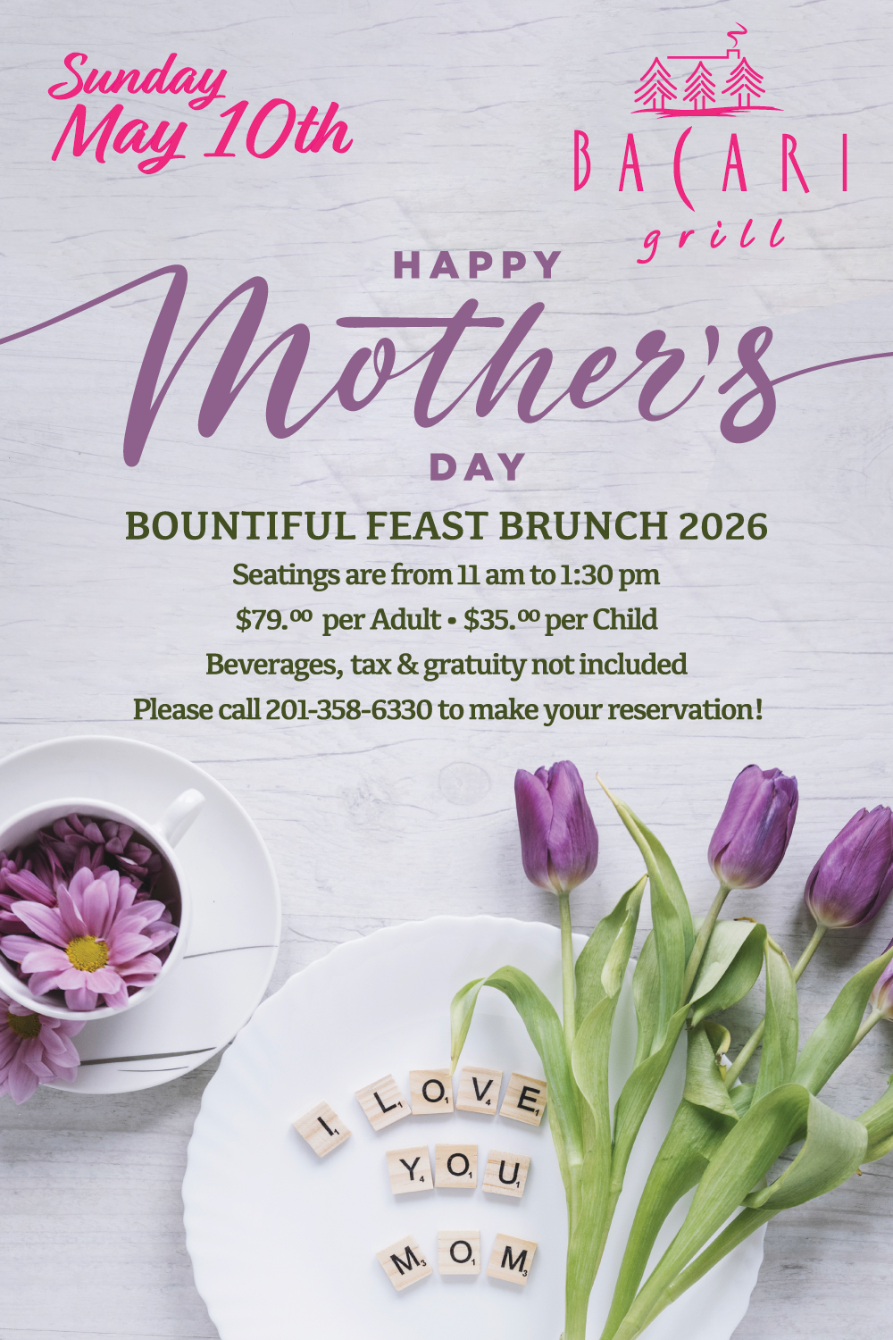 Please call 201-358-6330 to make your reservation!